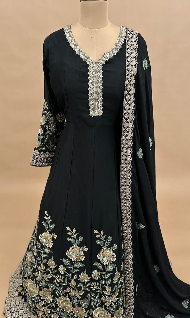 Georgette Fabric Party Wear Black Color Long Dress With Dupatta