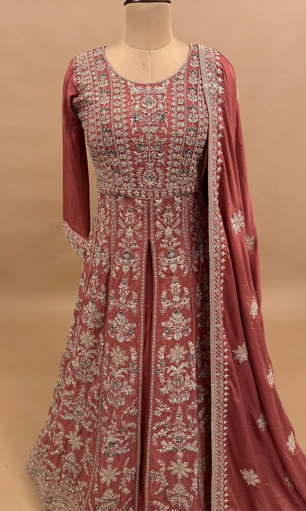 Heavy Indo-Western Front Cut Dress Pink Color With Dupatta