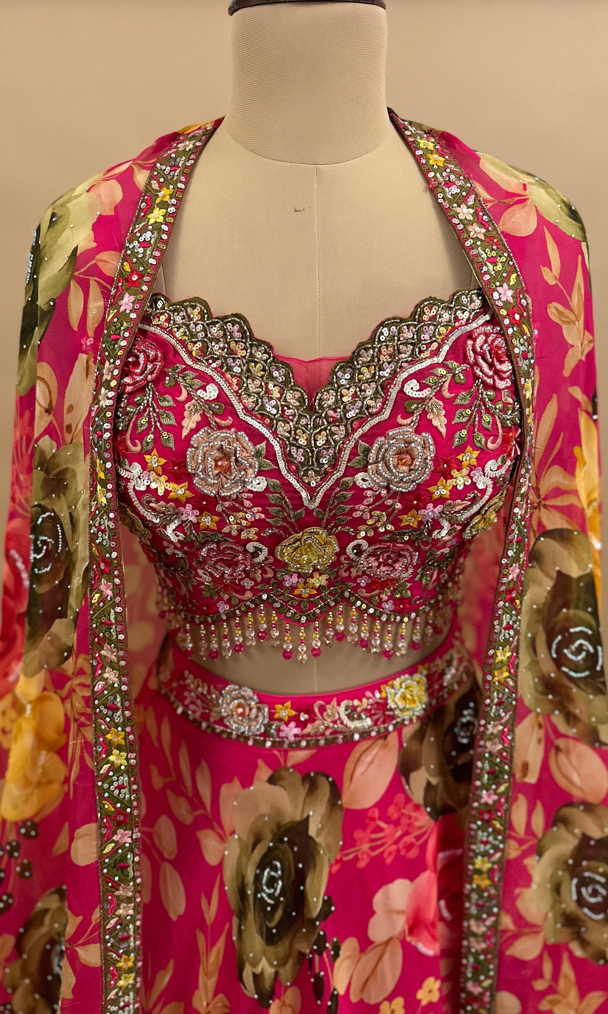 Elevate your festive wardrobe with this stunning multicolor lehenga set, crafted from premium organza fabric that drapes beautifully and moves with grace. The ensemble features intricate mirror and stone embroidery work that catches light elegantly, creating a captivating shimmer perfect for weddings, celebrations, and special occasions. The coordinating jacket adds a sophisticated layer, allowing you to style the piece in multiple ways. The lightweight organza construction ensures comfort throughout your event while maintaining the polished, refined aesthetic that defines traditional party wear. An investment piece that combines timeless elegance with contemporary design sensibilities.