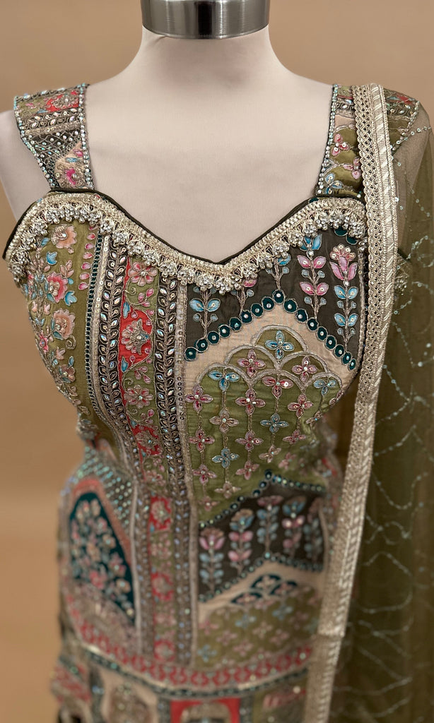 This lightweight Green sharara suit crafted from breathable georgette fabric combines comfort with elegance. Featuring intricate sequin and stone embroidery, it adds subtle sparkle perfect for festive occasions. The included dupatta complements the ensemble, making it a sophisticated choice for party wear that ensures both style and ease throughout your event.