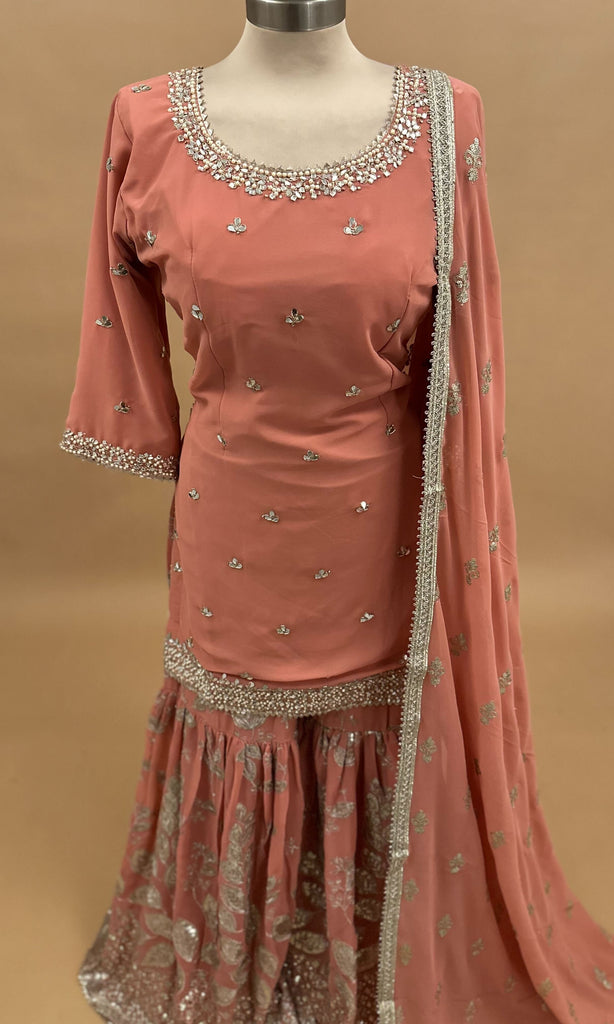 Light Weight Dusty Pink Color Sharara Suit On Georgette Fabric With Dupatta