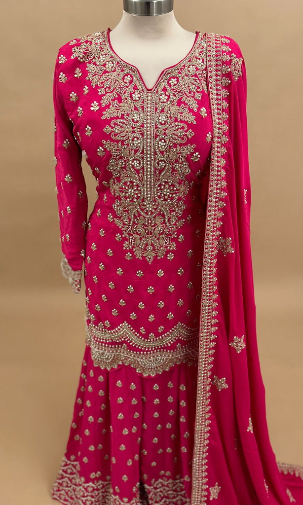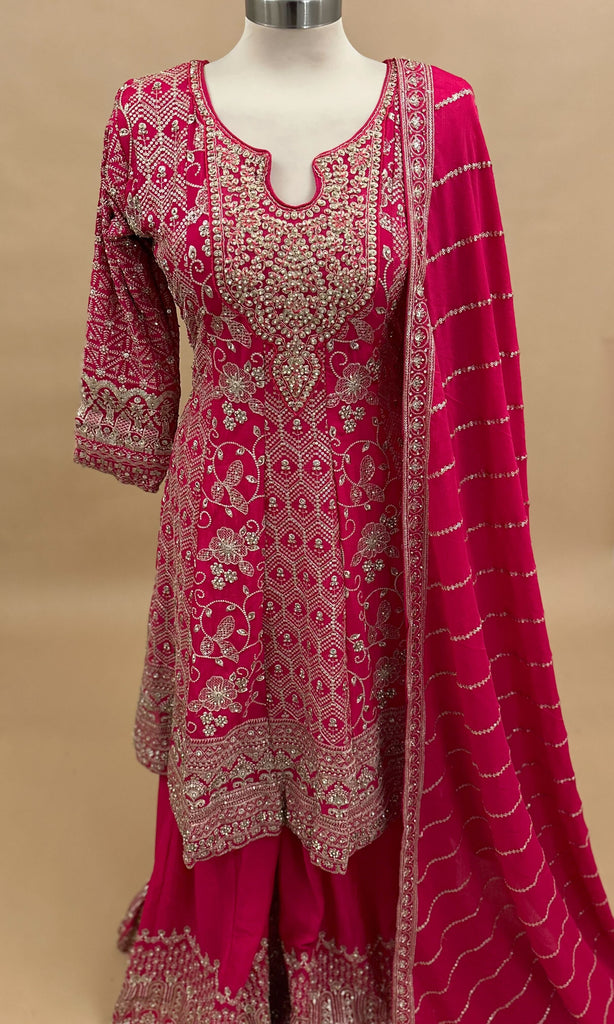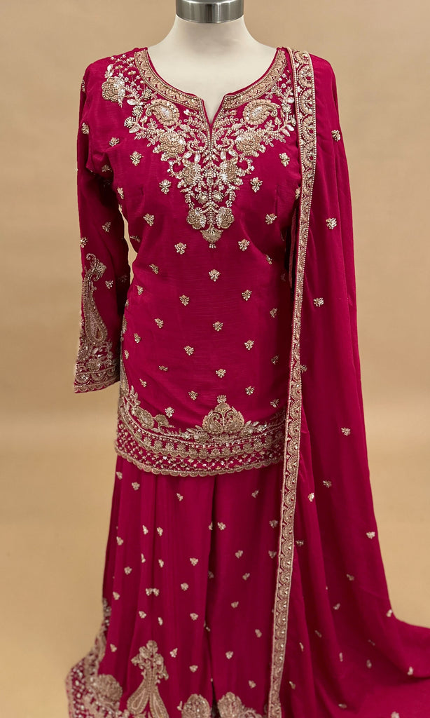 Heavy Pearl And Stone Work Embroiderey Magenta Color Palazzo Suit With Dupatta