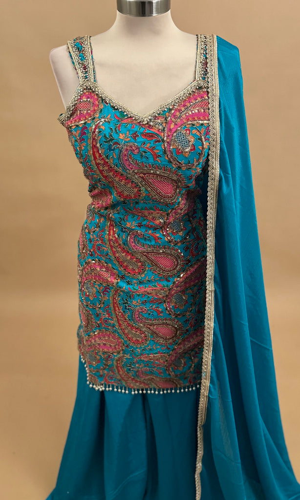 Georgette Fabric Party Blue Color Wear Farshi Salwar Suit With Dupatta