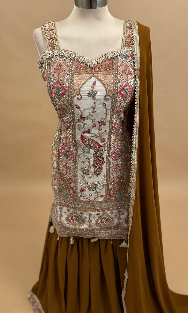 Pearl And Stone Work Peachy Pink Color Palazzo Suit With Dupatta