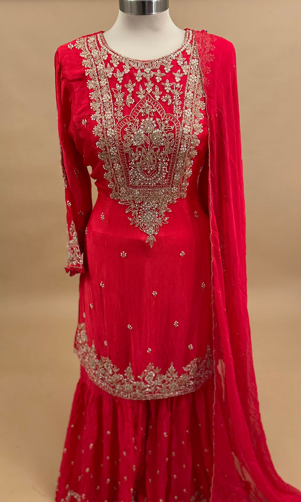 Orange-Red Color Elegant Style Party Wear Sharara Suit With Dupatta