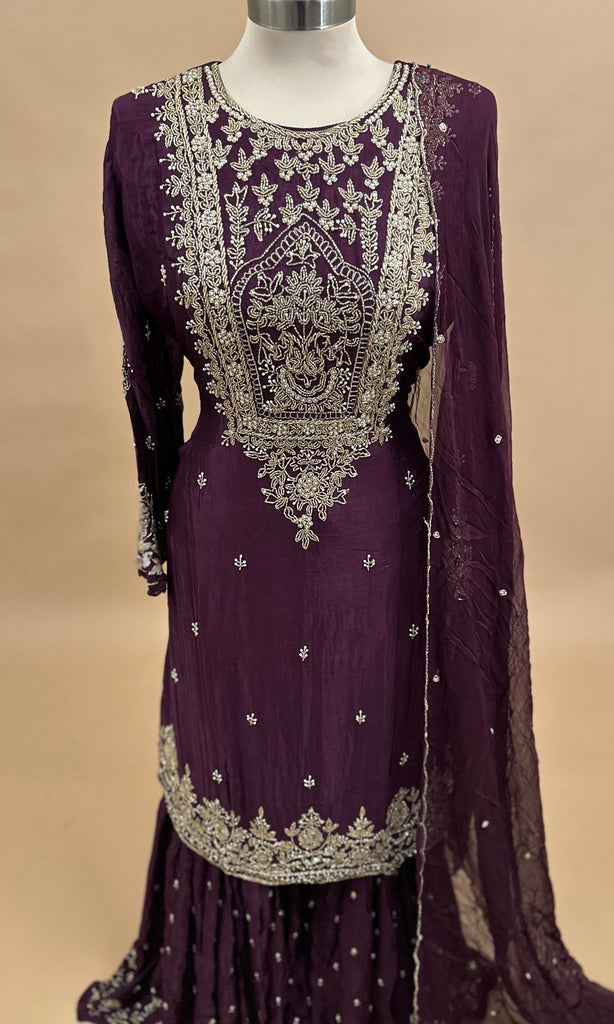Purple Plum Color Elegant Style Party Wear Sharara Suit With Dupatta