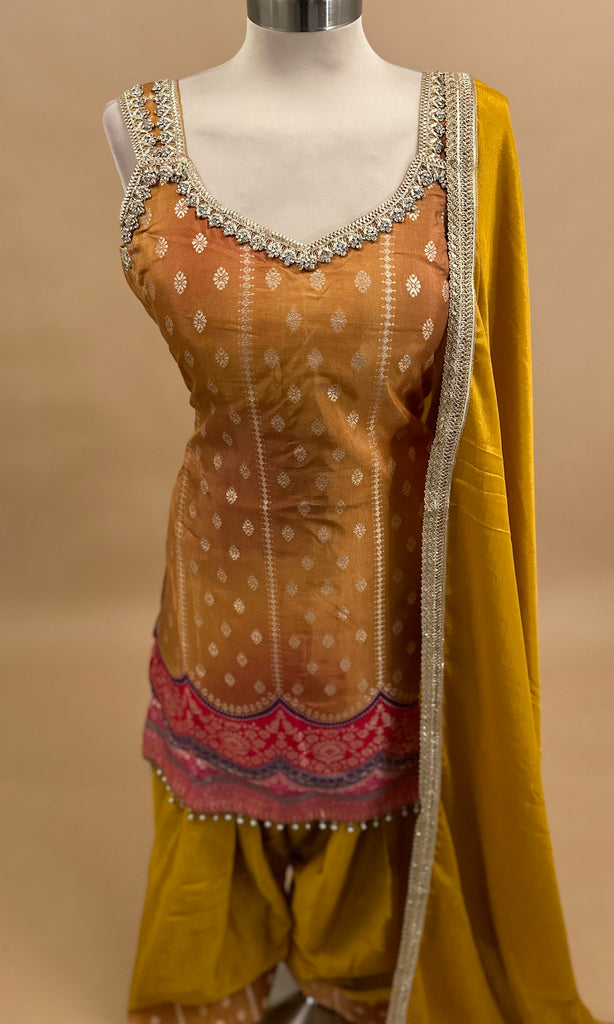Yellow Color Bnarsi Print Light Weight Farshi Salwar Suit With Dupatta