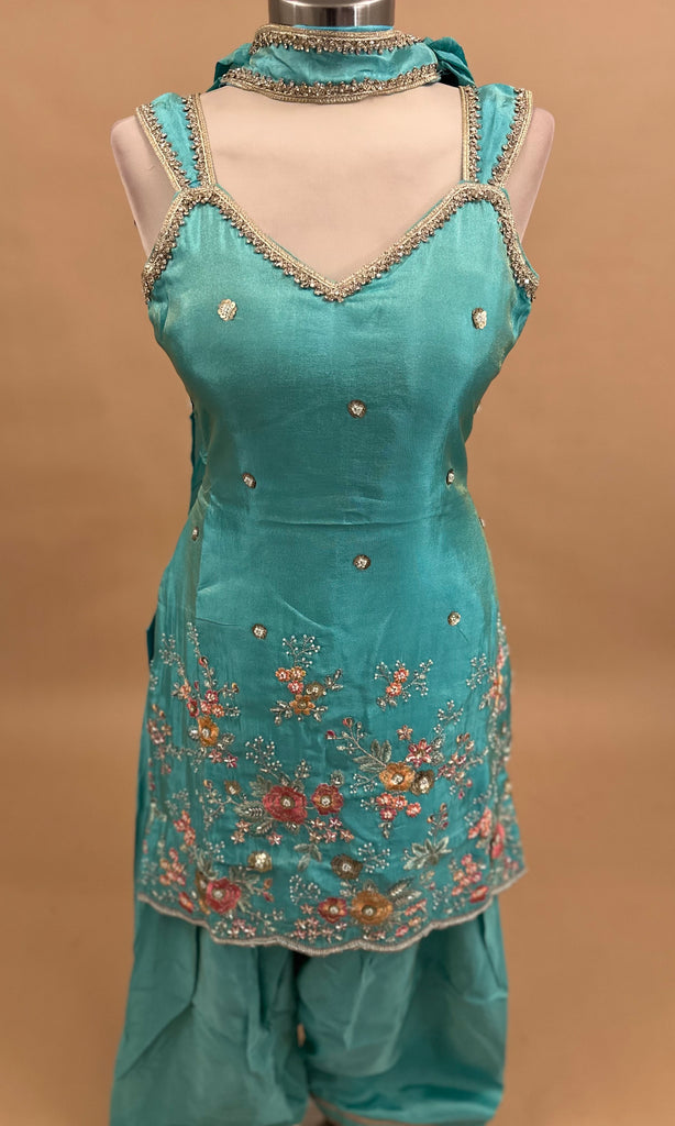 Blue Color Light Weight Farshi Salwar Suit On Shimmer Fabric With Dupatta
