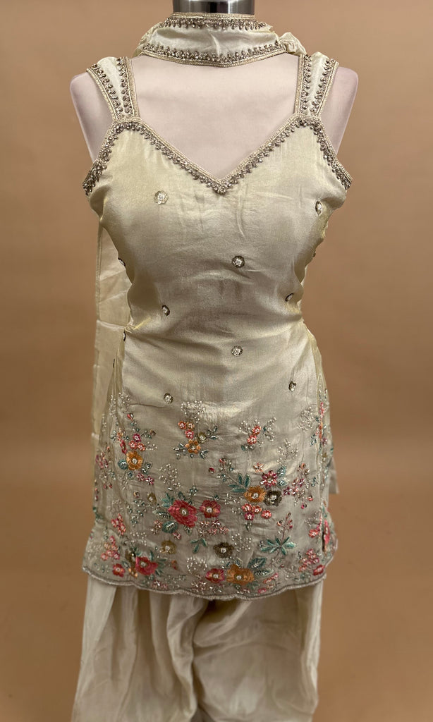 Cream Color Light Weight Farshi Salwar Suit On Shimmer Fabric With Dupatta