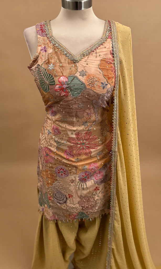 Yellow Color Georgette Fabric Party Wear Farshi Salwar Suit With Dupatta