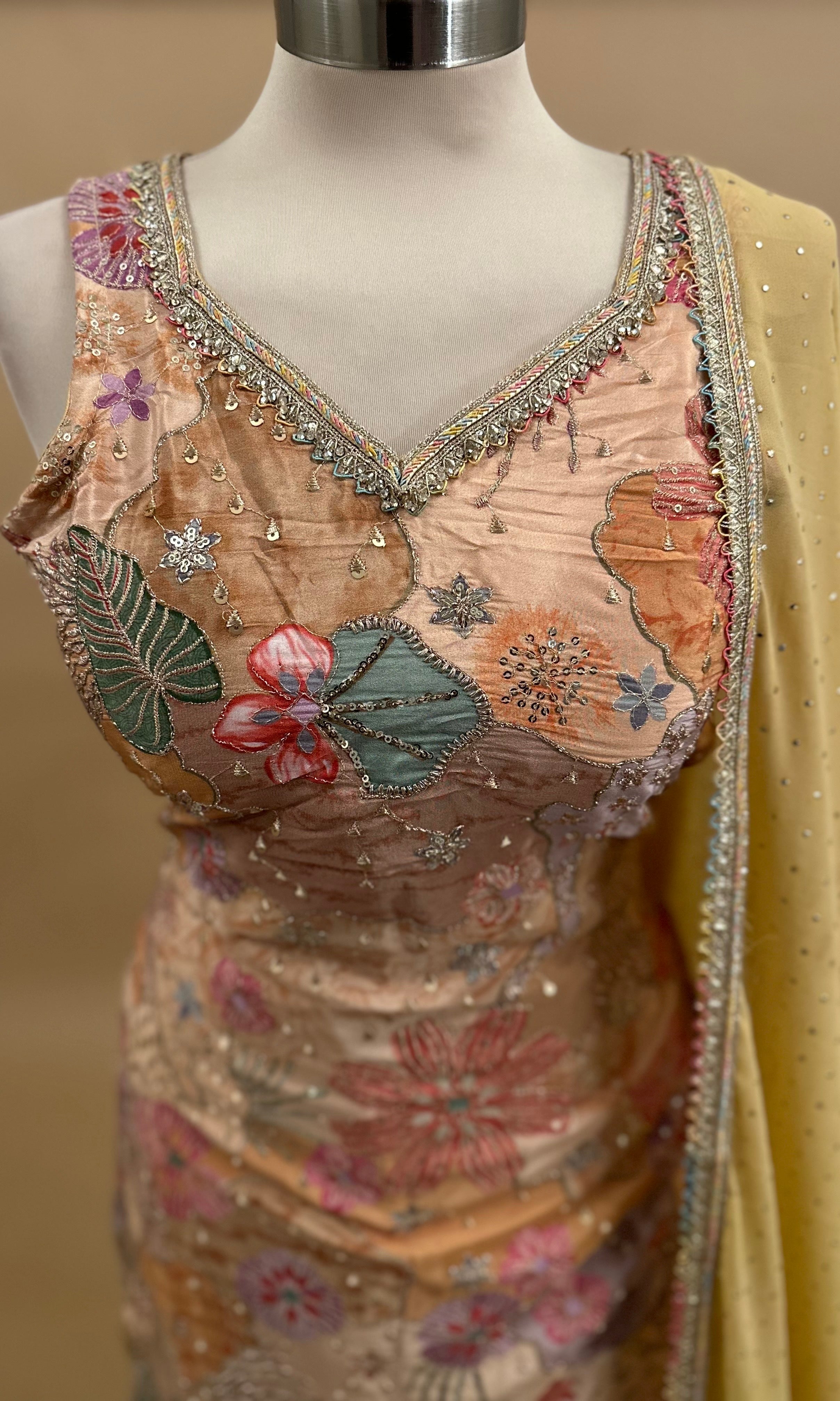 Yellow Color Georgette Fabric Party Wear Farshi Salwar Suit With Dupatta