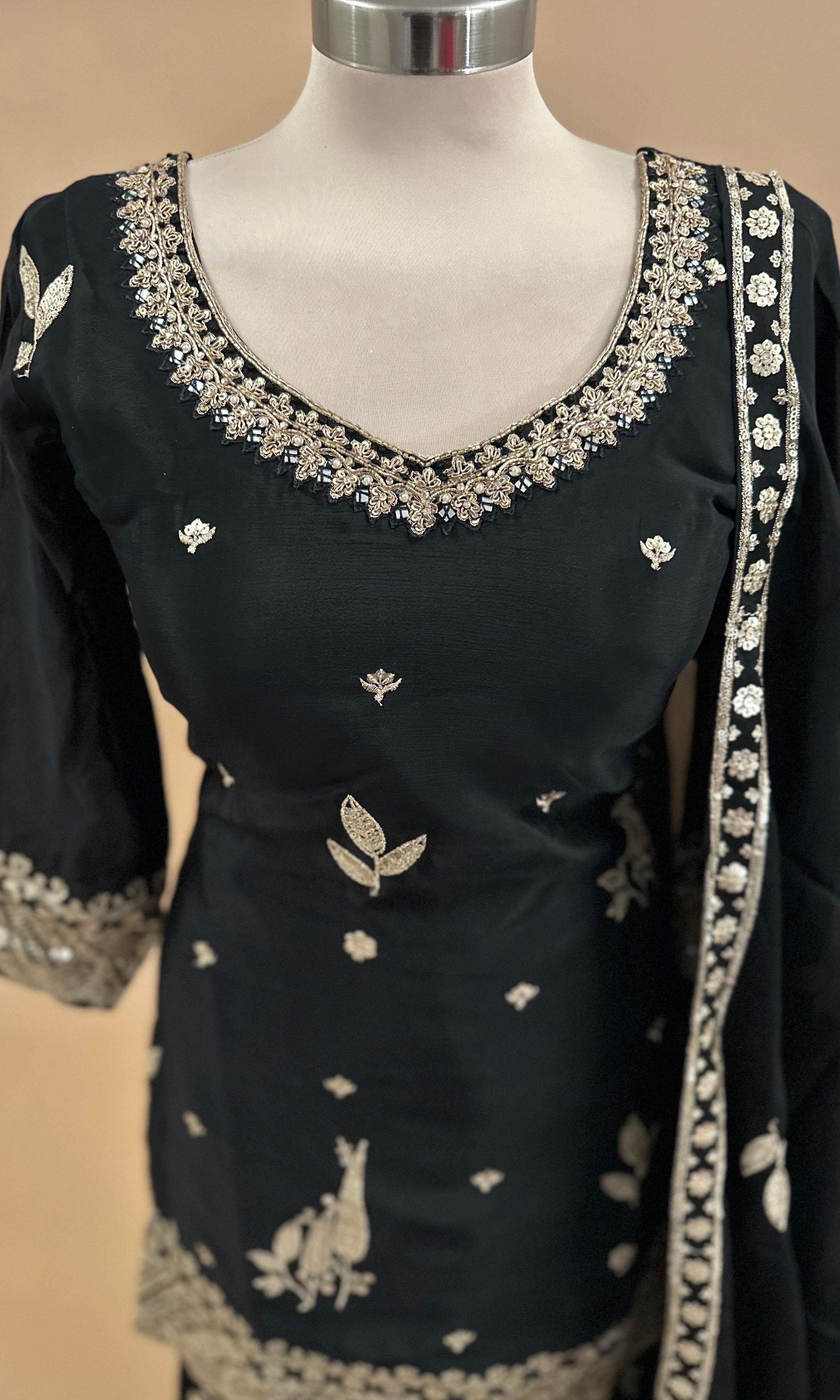 Dasheen Fabric Party Wear Palazzo Suit Black Color With Dupatta
