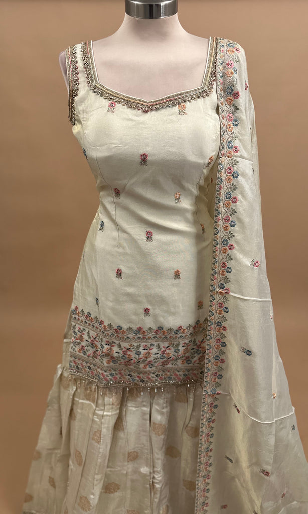 Bnarsi Silk Fabric Ivory White Color Party Wear Sharara Suit With Dupatta