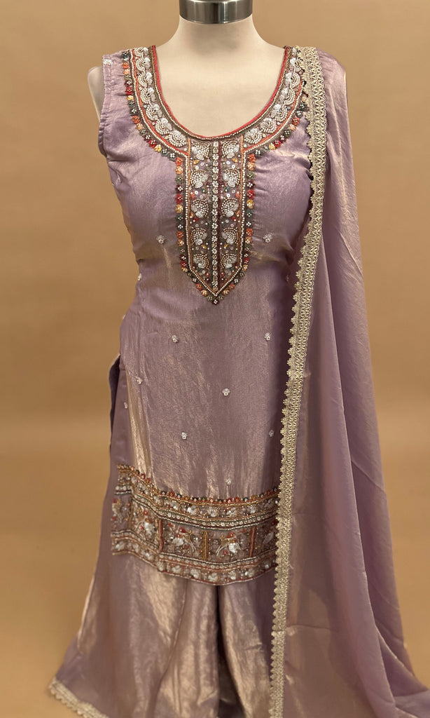 Tissue Fabric Light Weight Palazzo Suit Purple Color With Dupatta