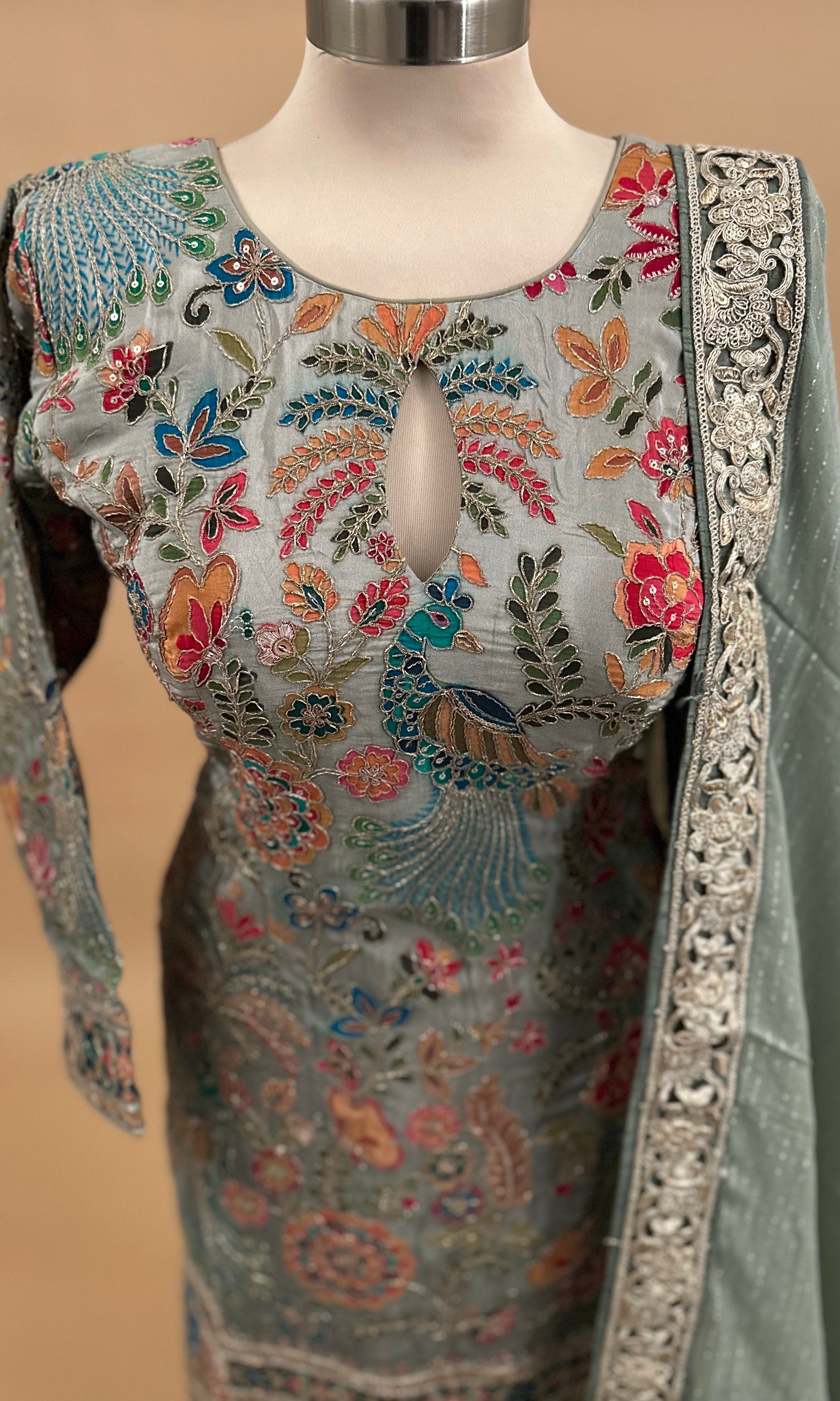 Elevate your ethnic wardrobe with this stunning Dasheen fabric long kameez suit, crafted for sophisticated style. The multicolor palette offers versatile pairing options, while intricate sequin embroidery adds refined glamour to the traditional silhouette. Constructed from premium Dasheen fabric, this ensemble delivers exceptional drape and comfort for all-day wear. The coordinated pants complete the look with polished elegance, making it an ideal choice for celebrations, gatherings, or elevated everyday occasions.